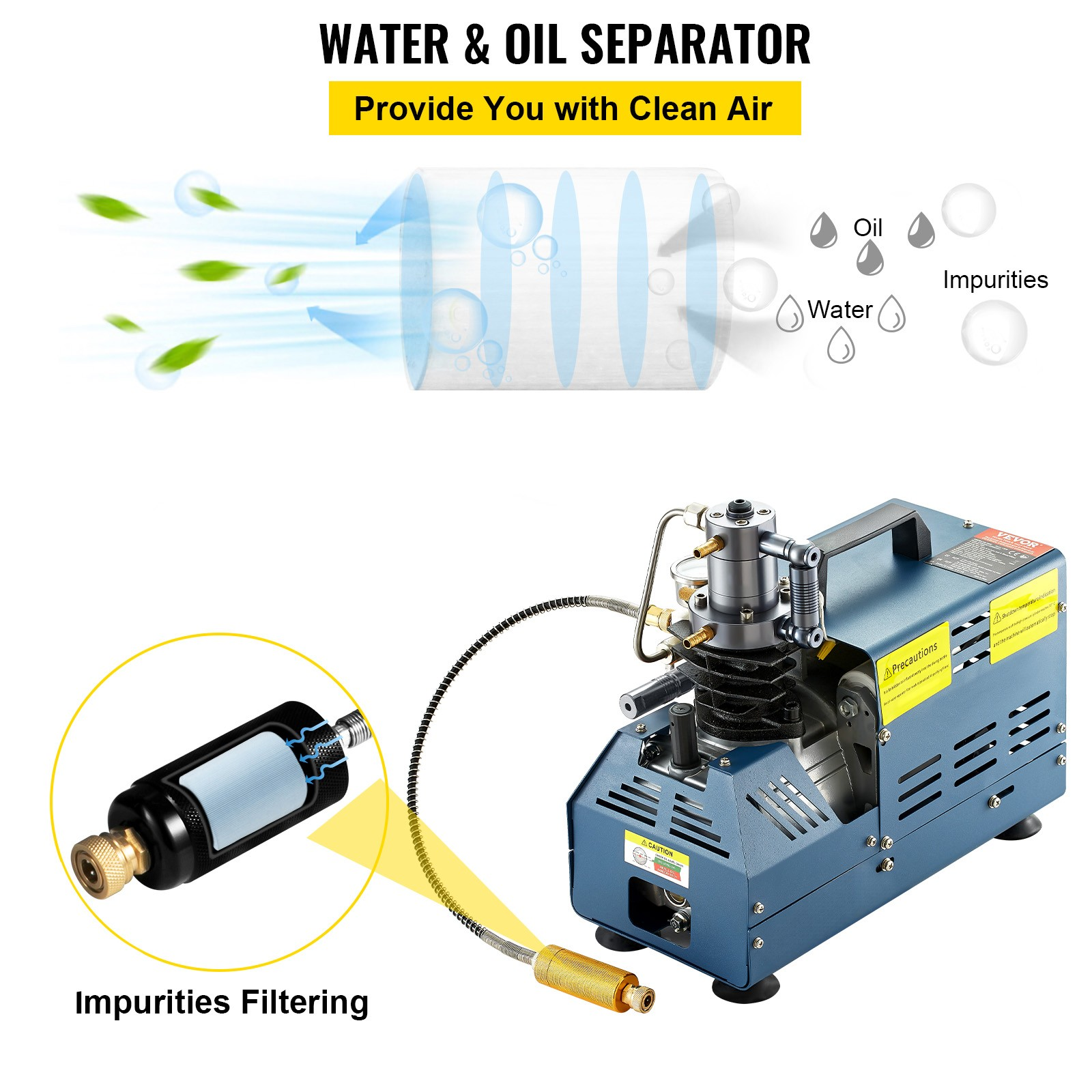 Verfügt über ein Filtersystem, das Verunreinigungen effektiv reduziert. Ein Luftreinigungsfilter am Auslass wird benötigt, um Tauchflaschen sicher zu befüllen. Ideal für Mini-Tauchflaschen, PCP-Luftgewehre, Paintball-Flaschen, Luftpistolen, Paintball-Ausrüstung, Brandbekämpfung und die Erkennung von Lecks.