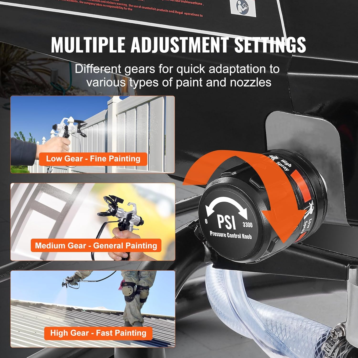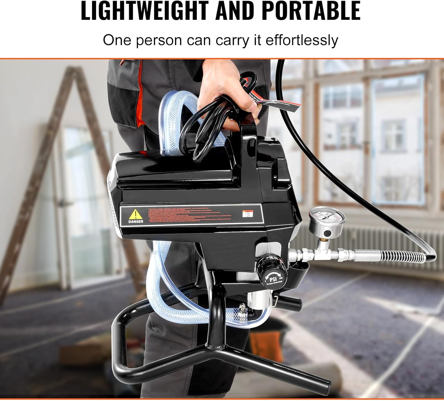 Dieses professionelle Airless Farbspritzgerät mit 950W Motor revolutioniert Ihre Malerarbeiten! 🎨 Mit einem beeindruckenden Druck von bis zu 3000 PSI und einer Durchflussrate von 2,0 L/min erzielen Sie in kürzester Zeit perfekte Ergebnisse. Das Gerät ist 5x schneller als Rollen und 12x schneller als Pinsel – ideal für mittlere bis große Lackierprojekte!