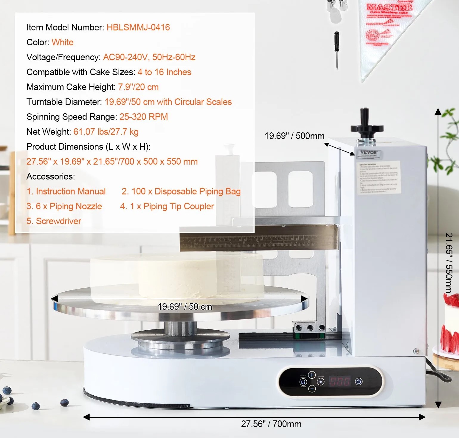 Für Kuchen 10-40cm (4-16 Zoll), Höhe bis 20cm, 50cm Drehteller mit Markierungen