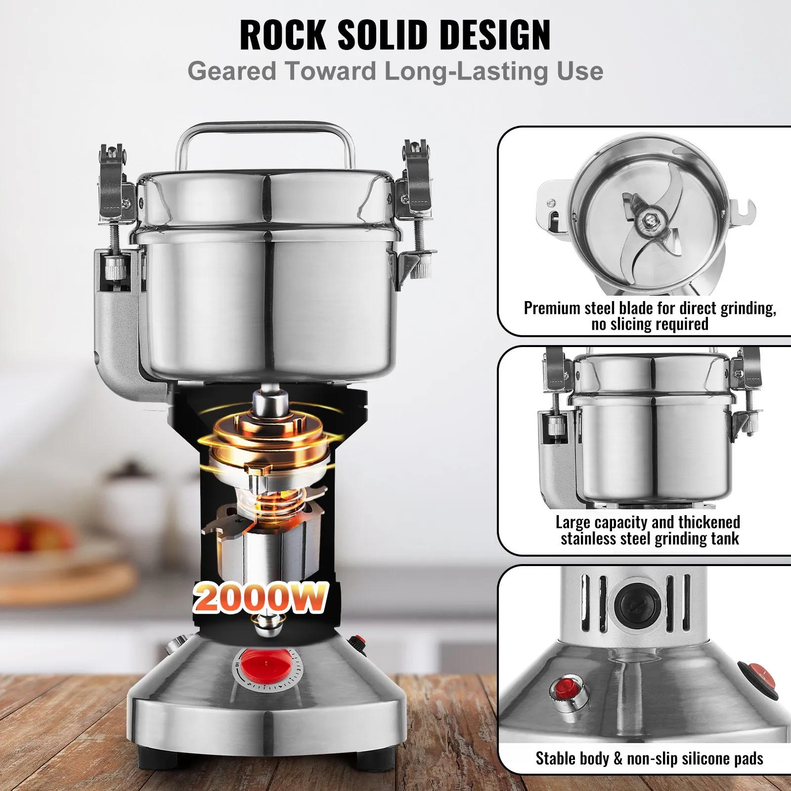 Getreidemühle elektrisch, Gewürzmühle 2000W, Kaffeemühle elektrisch, Kornmühle, Pulverisierer Edelstahl, Hochgeschwindigkeitsmühle, Mehlmühle elektrisch, Gewürze mahlen, Kaffee mahlen, Getreidemühle kaufen, elektrische Mühle, Haushaltsmühle, Mehrzweckmühle, Trockenmühle, Edelstahl Getreidemühle