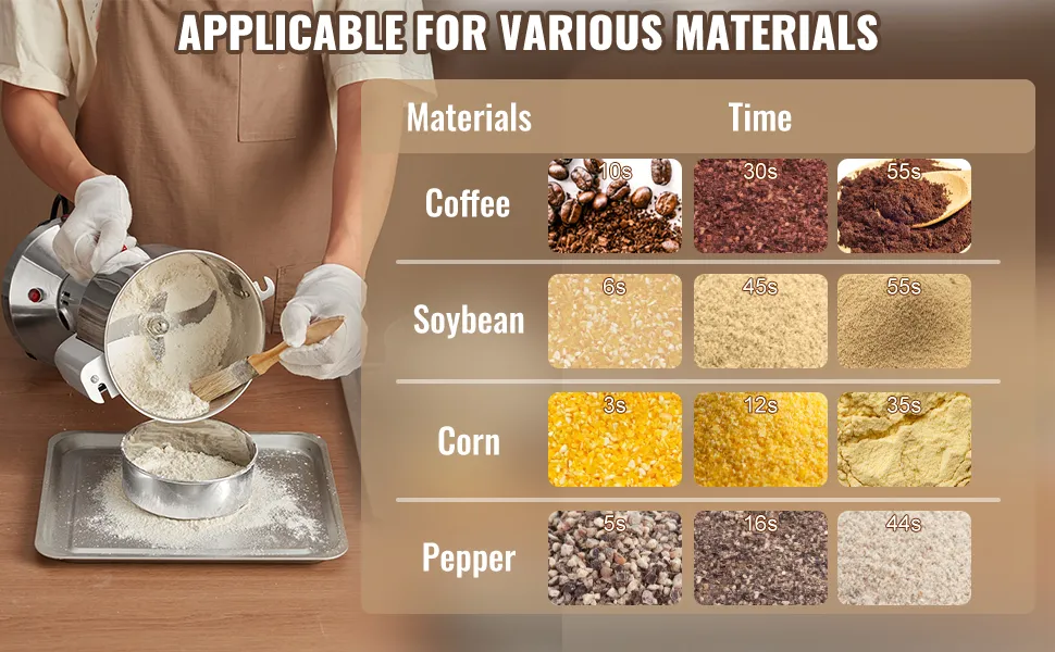 Entdecken Sie die ultimative Lösung für Ihre Küche: Unsere elektrische Hochgeschwindigkeits-Getreidemühle mit beeindruckenden 2000 Watt Leistung mahlt alle trockenen Lebensmittel in Sekundenschnelle zu feinem Pulver. Mit einer Kapazität von 550g verarbeiten Sie mühelos größere Mengen an Getreide, Gewürzen, Kaffeebohnen und vielem mehr.