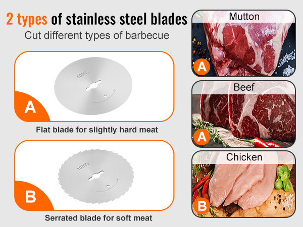 - 2 hochwertige Edelstahlklingen – flach & gezahnt für jede Fleischart