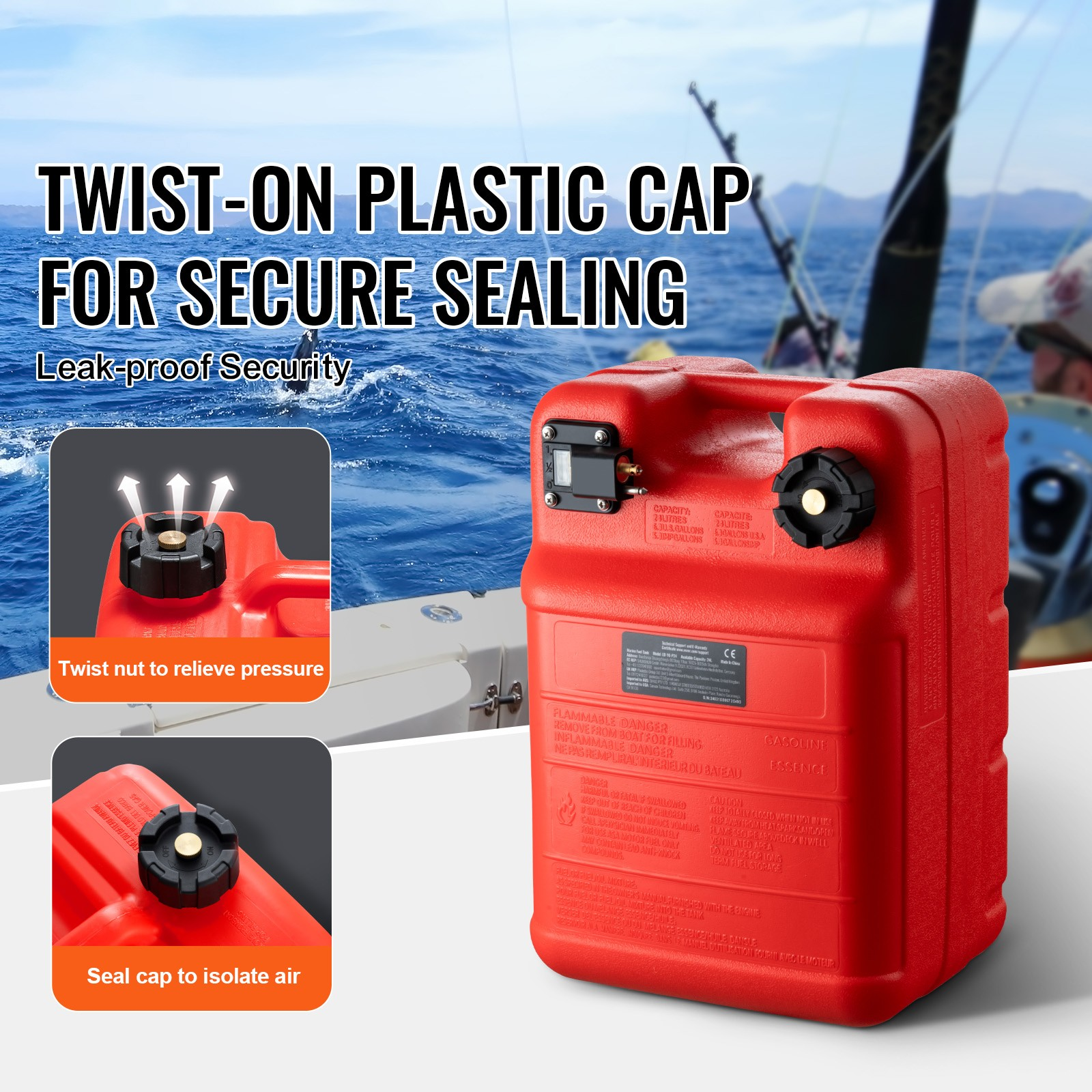 Die integrierte visuelle Füllstandsanzeige erlaubt jederzeit einen schnellen Blick auf den Kraftstoffvorrat, ohne den Deckel zu öffnen. Getrennte Einlass- und Auslassöffnungen verhindern Kraftstoffverschüttung beim Befüllen und Entnehmen zuverlässig – auch bei rauer See. Die Entlüftungskappe lässt sich öffnen, um aufgebauten Innendruck abzulassen, oder fest verschließen für eine auslaufsichere Abdichtung. 🎣 Der mitgelieferte 3-m-Kraftstoffschlauch passt an die meisten gängigen Außenbordmotoren und erlaubt sofortigen Einsatz ohne zusätzliche Teile.