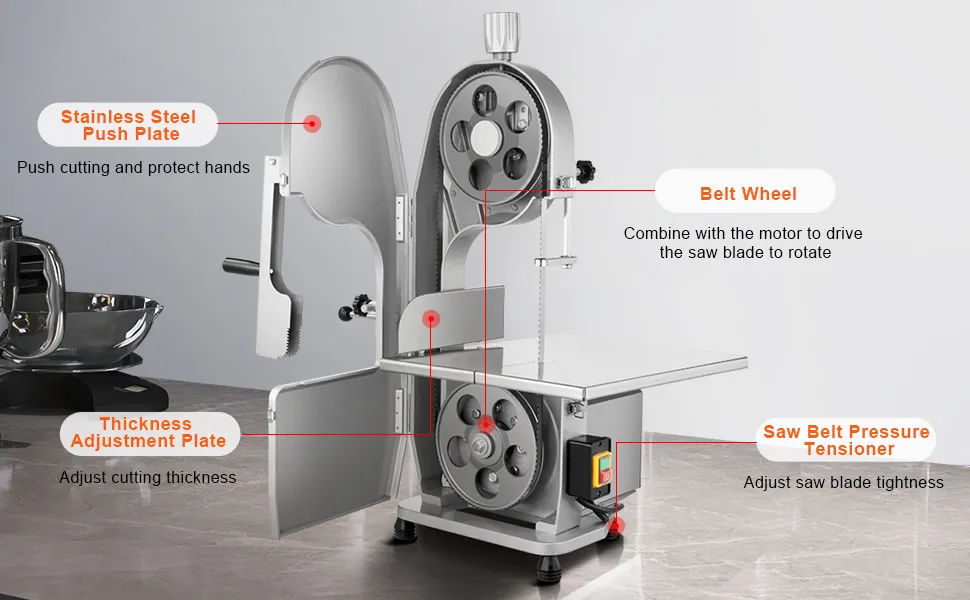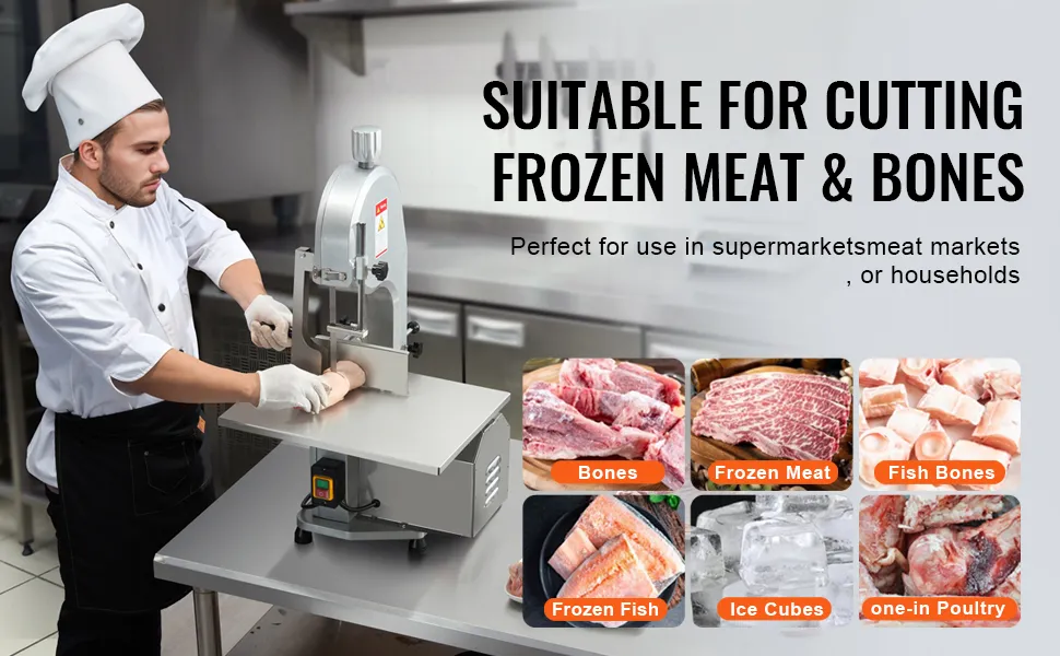 Perfekt für Rippen, Wild, Rinder- und Lammknochen, gefrorenen Fisch. Ideal für Restaurants, Metzgereien, Supermärkte und Fleischverarbeitung.
