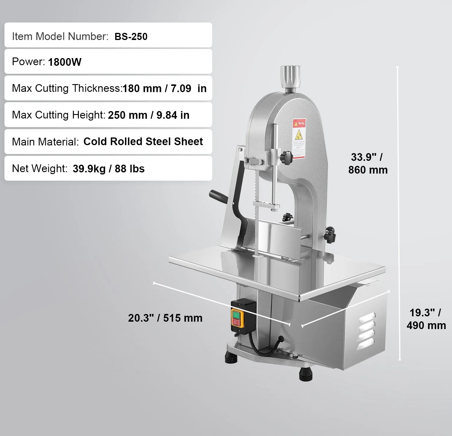 Suchen Sie eine professionelle Fleischbandsäge für Ihre Metzgerei, Ihr Restaurant oder Ihren Gastronomiebetrieb? Unsere 1800W Knochenschneidemaschine ist die perfekte Lösung für effiziente Fleischverarbeitung.