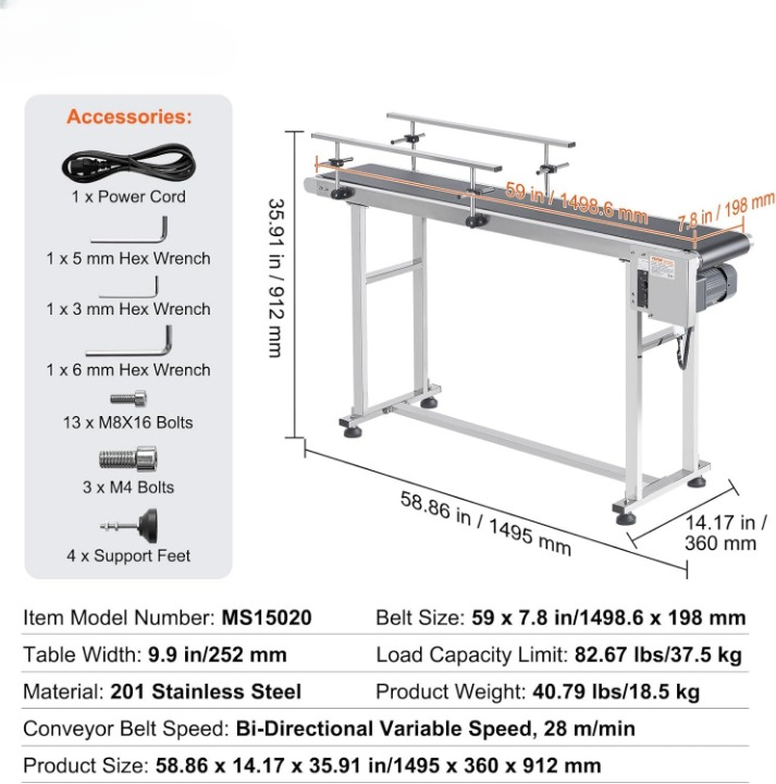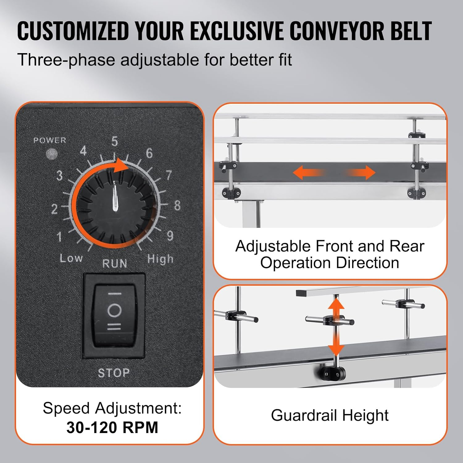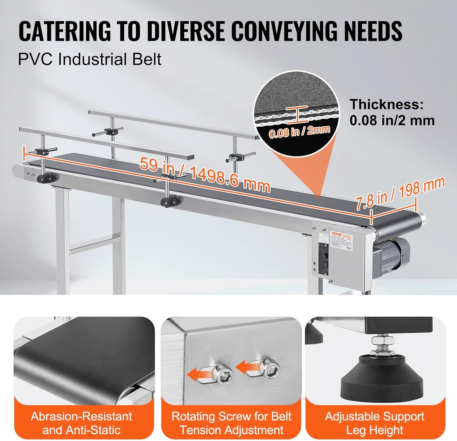 Dieser professionelle Bandförderer ist die perfekte Lösung für Ihre Produktions-, Verpackungs- und Sortieraufgaben! Mit Edelstahl-Konstruktion, antistatischem PVC-Band und variabler Geschwindigkeit sind Sie für jede Herausforderung gerüstet!