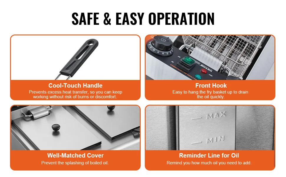 Mit dieser elektrischen Doppel-Fritteuse braten Sie Pommes, Fisch, Chicken, Donuts & mehr schnell, sicher und professionell.