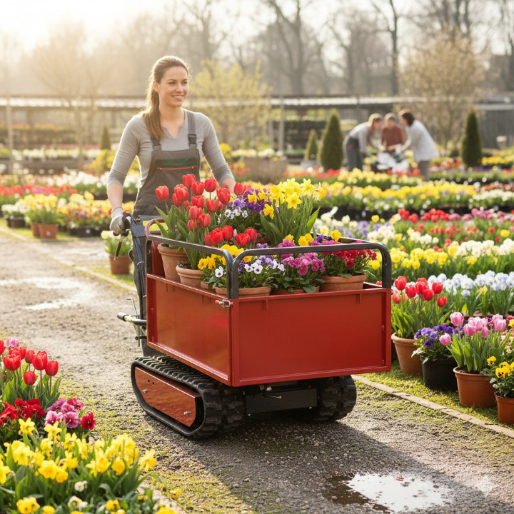 Der Raupendumper  530E ist ein leistungsstarker Allzwecktransporter mit einer beeindruckenden Ladekapazität von 500 kg. Dank des robusten Raupenantriebs und des zuverlässigen Loncin-Motors mit 6,5 PS bewältigt dieses Gerät selbst anspruchsvolle Steigungen problemlos und transportiert schwere Lasten sicher ans Ziel.