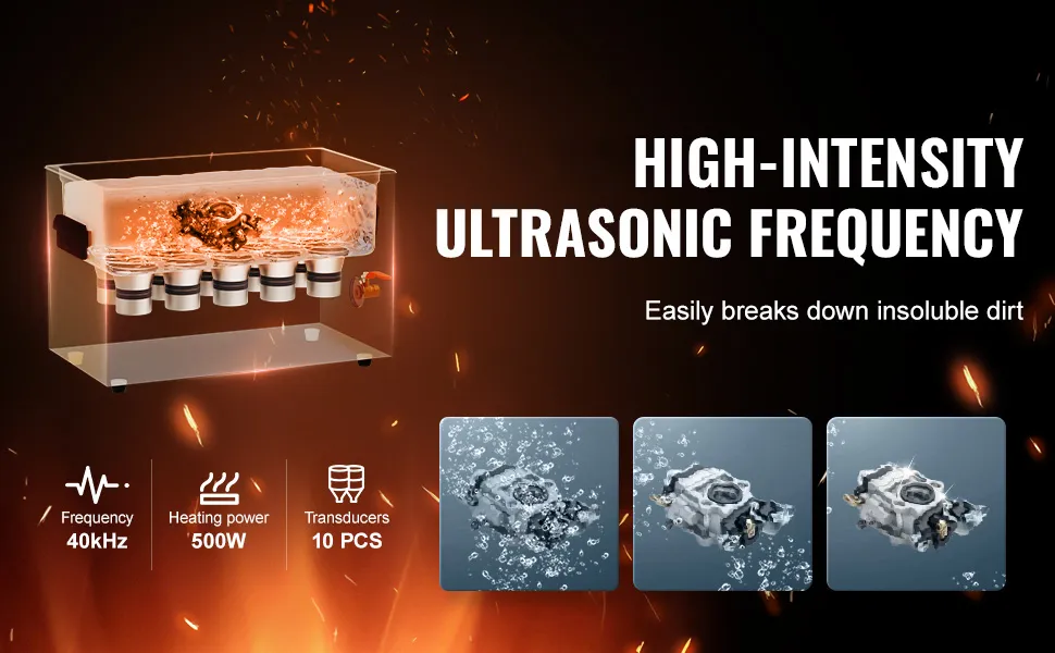 Millionen explosiver Mikroblasen dringen in jede Ritze ein und lösen selbst hartnäckigste Verschmutzungen. Perfekt für Industriekomponenten, Motorbauteile und Präzisionswerkzeuge.