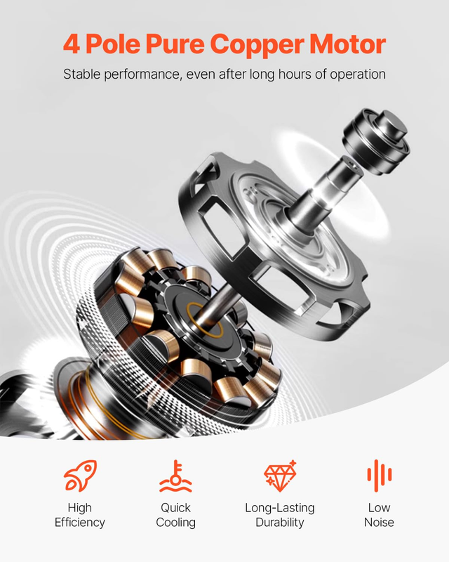 Einstufige 3,5 CFM Pumpe mit 4-stufigem Kupfermotor. Erreicht 5 Pa Endvakuum für optimale Blasenentfernung. Integrierter Kühlventilator für zuverlässigen Dauerbetrieb ohne Überhitzung.