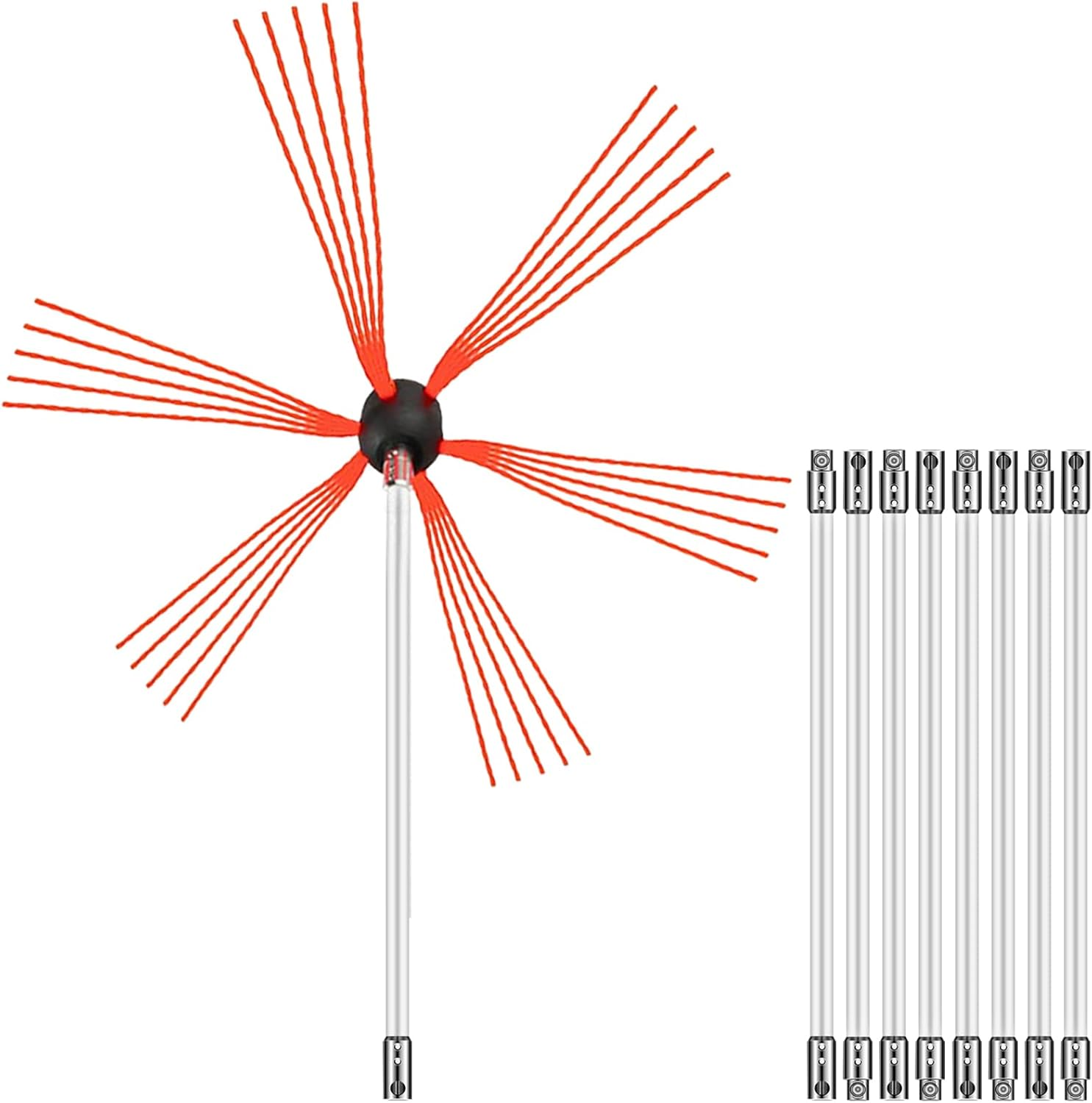 🏠 9 flexible Nylon-Stangen • Knopfverriegelung • Für 10-30cm Schornsteine 🏆