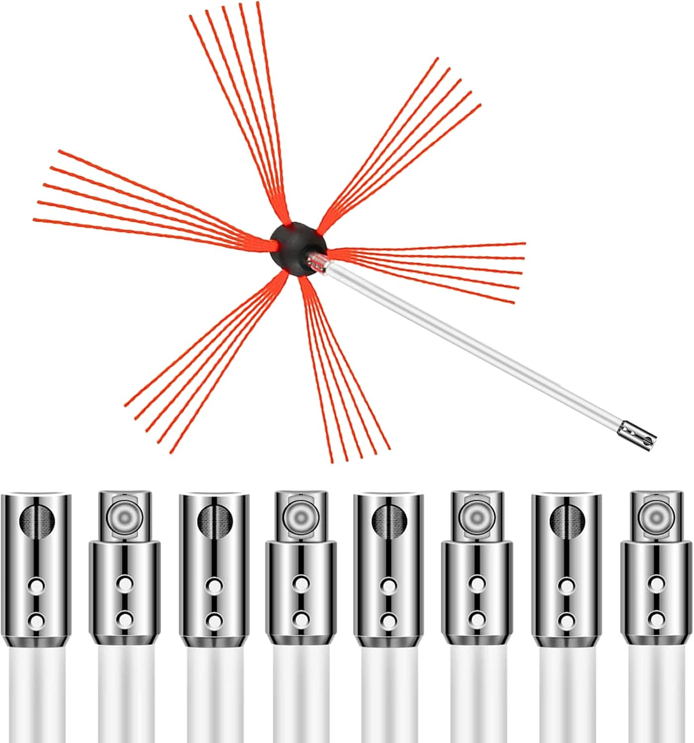 Dieses professionelle Schornsteinbürsten-Set mit 9 Metern Gesamtlänge ist die perfekte DIY-Lösung für die sichere Reinigung Ihres Schornsteins oder Kamins! Mit 9 flexiblen Nylon-Stangen à 1 Meter erreichen Sie mühelos auch hohe Schornsteine – und das alles von unten, ohne gefährliche Leiterarbeit auf dem Dach! Das hochwertige Nylon-Material ist extrem langlebig, elastisch und chemisch beständig. Die Stangen können bis zu 90 Grad gebogen werden ohne zu brechen – perfekt für enge Kurven und schwierige Winkel! 🔥