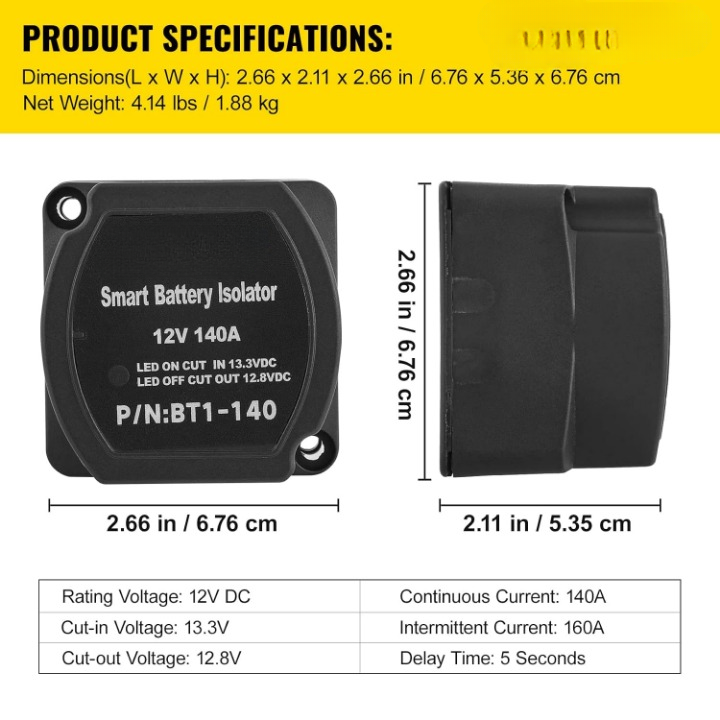 Das Doppelbatterie Trennrelais 12V 140A Split Charge Kit ist die professionelle Lösung für die gleichzeitige Ladung von zwei Batterien in Ihrem Fahrzeug. Mit diesem intelligenten System bleibt Ihre Starterbatterie immer voll geladen, während gleichzeitig eine Zweitbatterie für Ihre Bordelektronik versorgt wird.